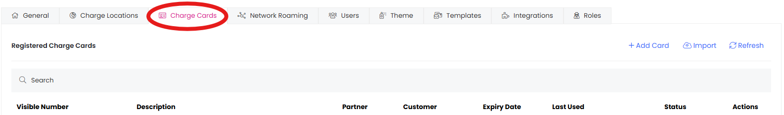 11. Refresh the page and click on "Charge Cards" tab within the same user account.